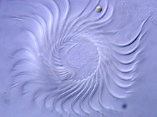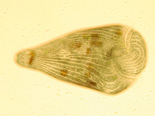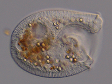 Ich bin eines der größeren Wimpertierchen und lebe in Seen und Tümpeln oft auf hohen Bergen. Ich mag Algen, Bakterien und Rädertierchen zum Fressen gern. Ich bin 120 µm (= 0,12 mm) groß.