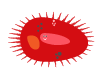 Ich lebe zwischen Wasserpflanzen und nahe am Ufer. Mit meinen Wimpernkann ich schwimmen und leckere Bakterien herbeistrudeln. Normal bin ich nicht rot, nur hier eingefärbt. Ich bin 200 µm (= 0,2 mm) groß.