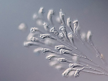 Wir sind nicht gerne allein und bilden daher sogenannte Kolonien, die aus mehreren Glockentierchen bestehen. Zu verbunden schweben wir im Wasser und fressen Bakterien. Wie sind zusammen 100 µm (= 0,1 mm) groß.