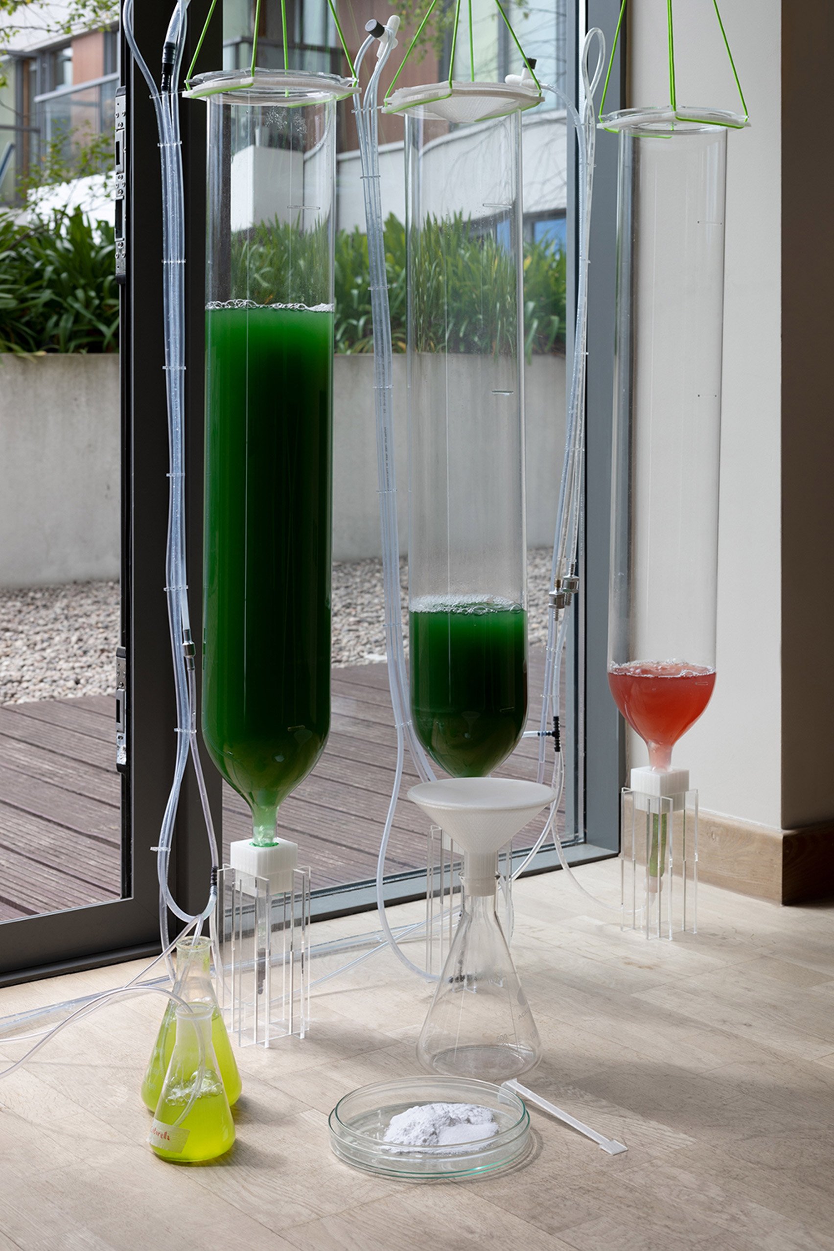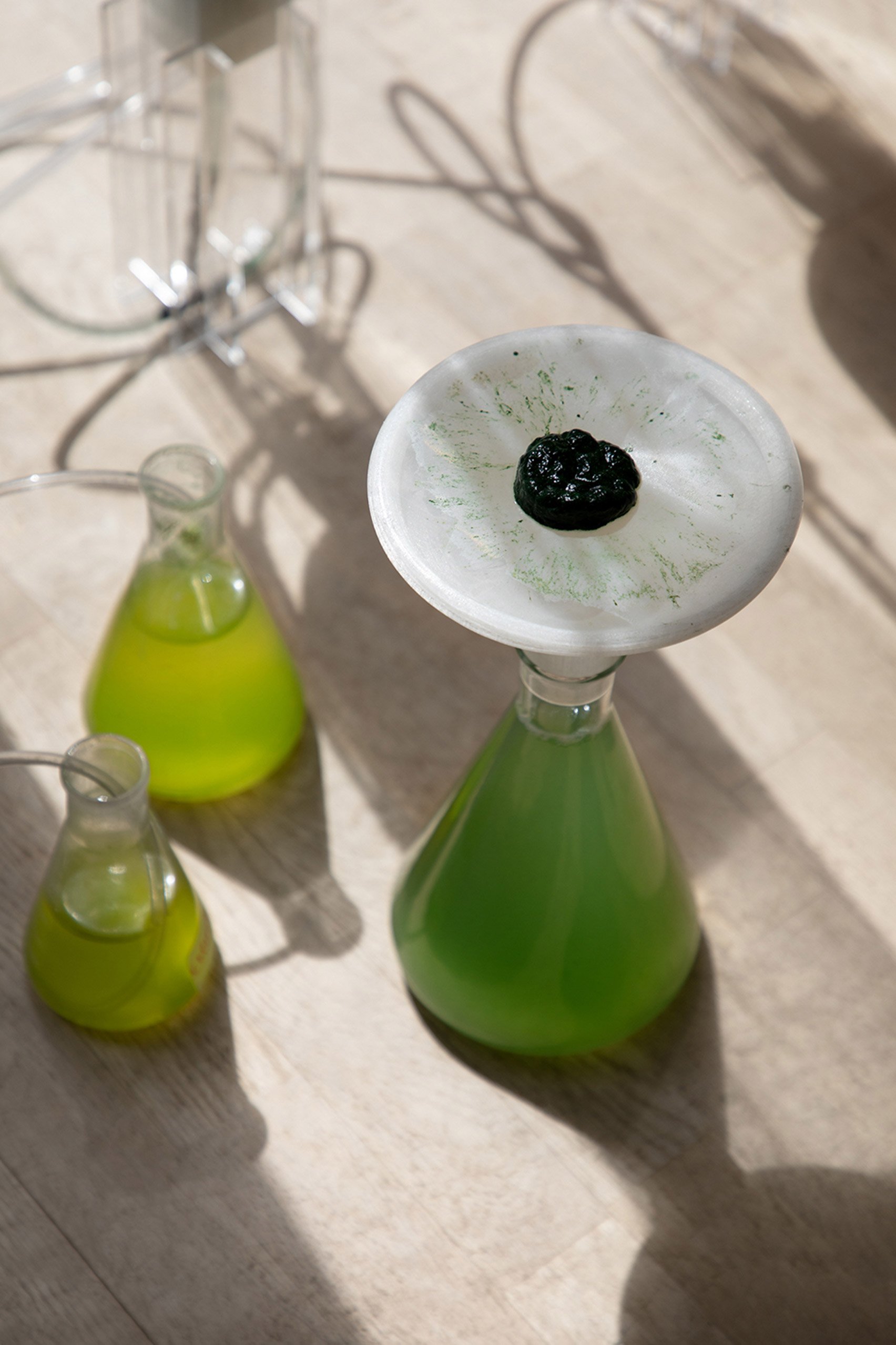 BioBombola ist ein lehrreiches Set mit essbaren Algen zum Selbstzüchten für Kinder, das vom Architektur- und Forschungsbüro EcoLogicStudio während der Coronavirus-Pandemie entwickelt wurde. Das DIY-Kit kann von Familien zu Hause verwendet werden, um eine Sorte von Spirulina – ein Cyanobakterium – zu züchten, die geerntet und als Proteinquelle zu Speisen und Getränken hinzugefügt werden kann.