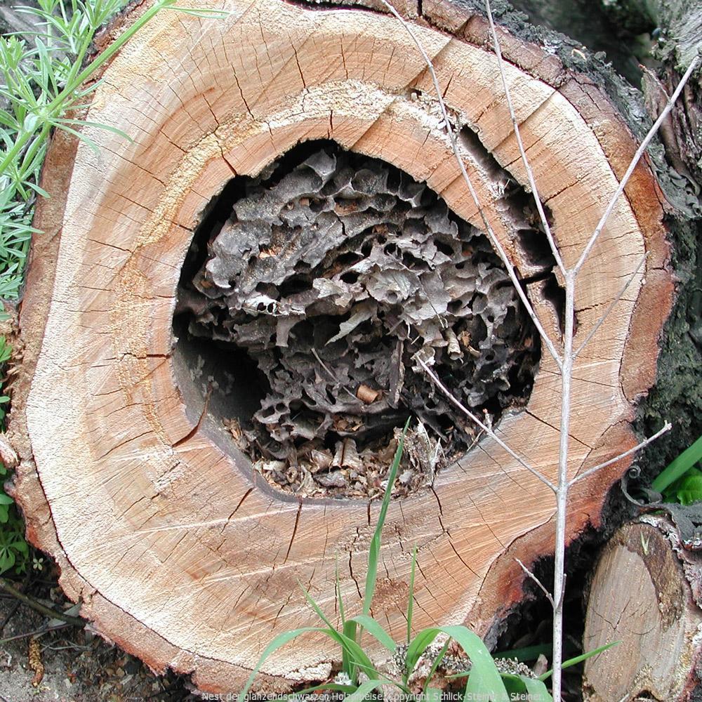 Ameisen leben im Wald aber wie bauen sie ihre reichgekämmerten Nester? Sie zerkleinern Holz ganz fein, tränken es in süßem Honigtau der von Blattläusen ausgeschieden wird und lassen einen Pilz die restliche Arbeit tun: der Pilz durchwächst das süße Substrat und gibt den Kammern Festigkeit wie Stahl im Stahlbeton. Fliegt eine junge Königin auf Hochzeitsflug, nimmt sie den Pilz für ihr zukünftiges Nest mit auf die Reise.